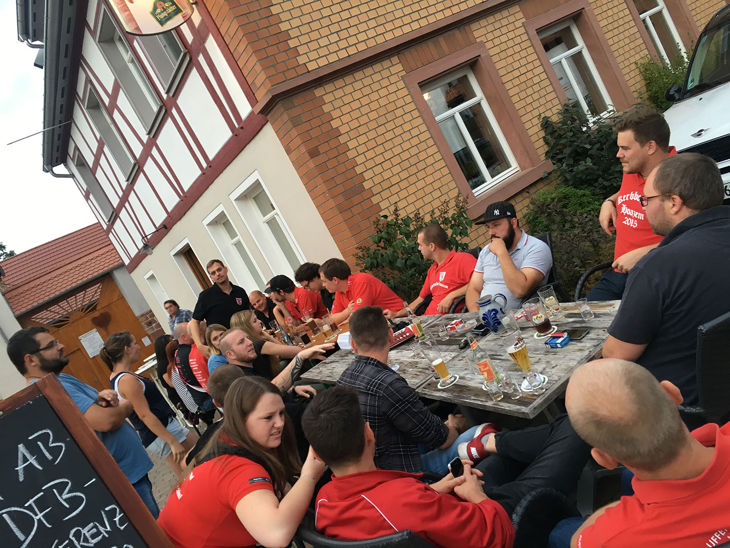 Nach zwei Tagen intensivem Aufbau kann es los gehen. Die Zelte sind aufgebaut, die Technik eingerichtet. Getränke stehen kühl und sorgen an den bevorstehenden, heißen Tagen für die nötige Kühlung von innen und zum Löschen des Durstes. Denn als erstes steht um 18.00 Uhr der Dorfrundgang, organisiert und durchgeführt vom Häzemer Dorf- & Kulturvereins auf dem Plan. Da könnte schon so manche Kehle austrocknen – denn bestimmt haben die Mitglieder des Dorf- & Kulturvereins wieder viel Neues zusammen getragen und zu erzählen. Die trockenen Kehlen können dann ab 19.30 Uhr beim „Offenen Singen“ mit dem MGV, den Village Voices und den Kerbborschen im Festzelt wieder angefeuchtet werden, bevor ab 23.00 Uhr die Kerbparty und DJ Timo startet. Na dann – wir sehen uns ab 18.00 Uhr auf der Häzemer Kerb!